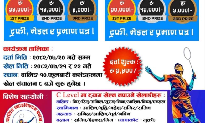 प्रथम बिधान ब्याडमिन्टन कप २०८२ भोली देखी सुरु हुने भएको छ ।…