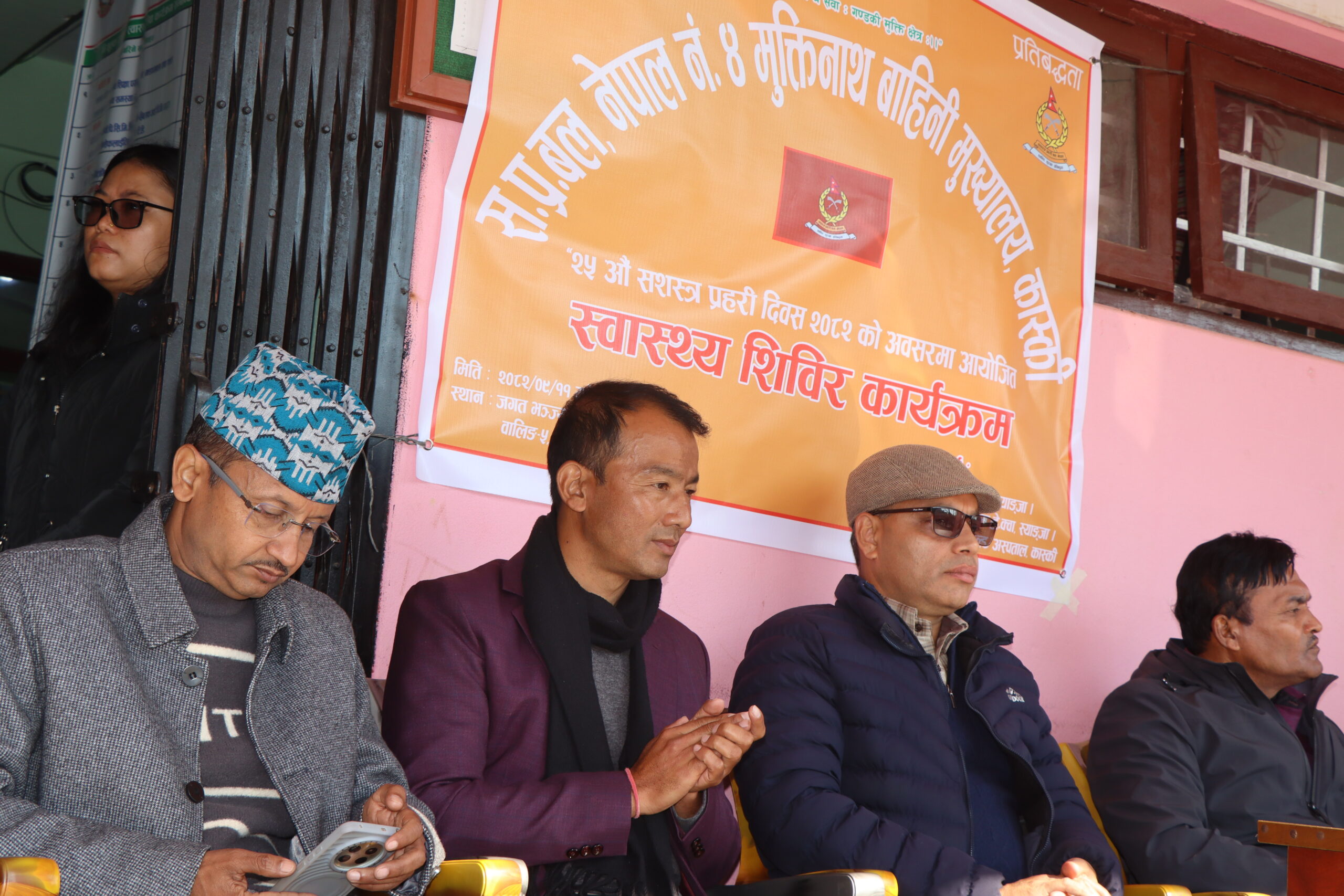 वालिङ: वालिङको वडा नं ५ मा निःशुल्क स्वास्थ्य शिविर सञ्चालन गरिएको छ । २५ औँ सशस्त्र प्रहरी दिवस २०८२ को अवसरमा वालिङ नगरपालिका र सशस्त्र प्रहरी बल नेपाल, गुल्म हेडक्वाटर स्याङ्जाको संयुक्त आयोजनामा वालिङ नगरपालिका वडा नं ५ स्थित जगत भञ्ज्याङ स्वास्थ्य चौकीमा निःशुल्क स्वास्थ्य शिविर सञ्चालन गरिएको छ। एक दिन सञ्चालन हुने शिविरमा स्थानीयको सामान्य स्वास्थ्य परीक्षण, रोग पहिचान तथा आवश्यक परामर्श सेवा प्रदान गरिएको वालिङ नगरपालिकाका स्वास्थ्य शाखा प्रमुख कमल पाण्डेको भनाई छ। सेवाग्राहीको आर्थिक अवस्थालाई मध्यनजर गर्दे स्थानीय स्तर बाटै रोग निको हुने सम्भावना देखिएका सेवाग्राहीहरुलाई उक्त्त शिविर बाटै औषधी प्रदान गरिएको प्रमुख पाण्डेको भनाई छ ।